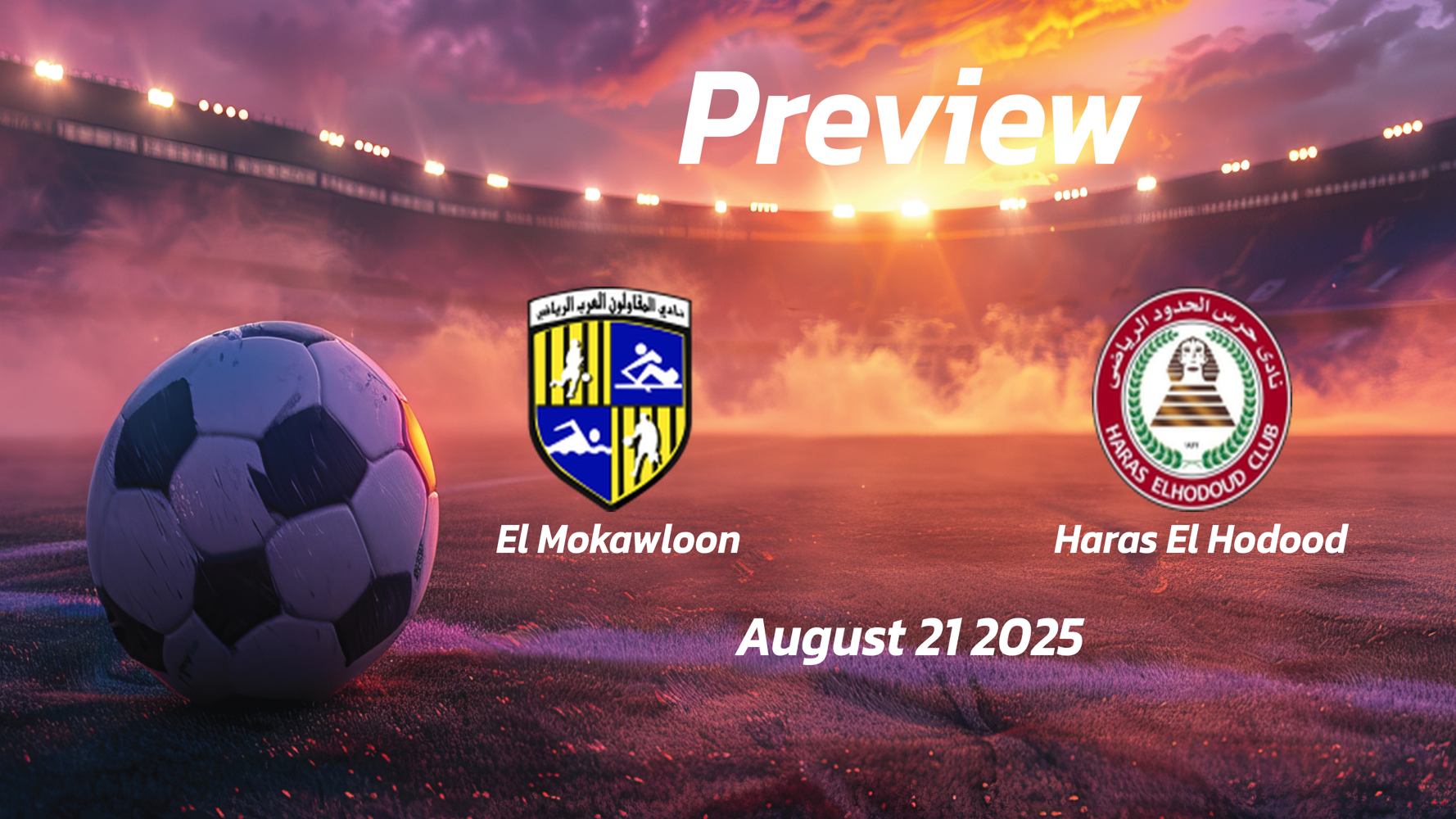 The match between the teams El Mokawloon and Haras El Hodood will take place on August 21 at 15:00 (GMT) at the stadium Arab Contractors Stadium.
