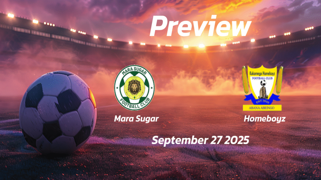 Mara Sugar will face off against Homeboyz on September 27 at 11:00 (GMT). Mara Sugar currently holds the 12th spot in the FKF Premier League, while Homeboyz sits two places higher in 10th position. Both teams have yet to make a significant impact in terms of goals this season.